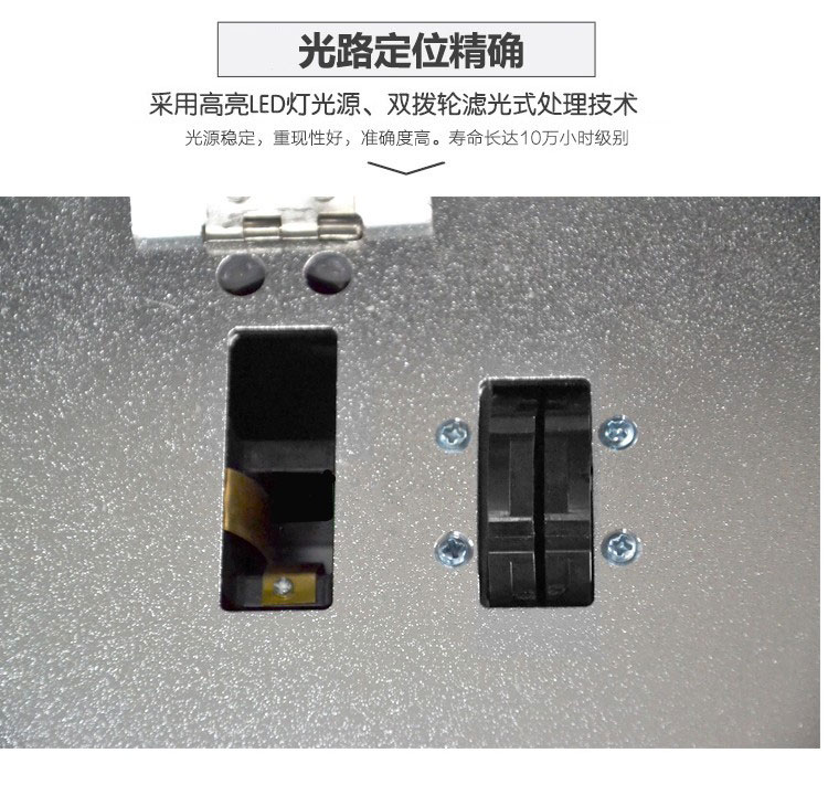 采用高光引導光源和雙輪濾波處理技術,確保光源波長穩定,矽半導體作為信號接收係統,壽命10萬小時。光源穩定、重現性好、準確。